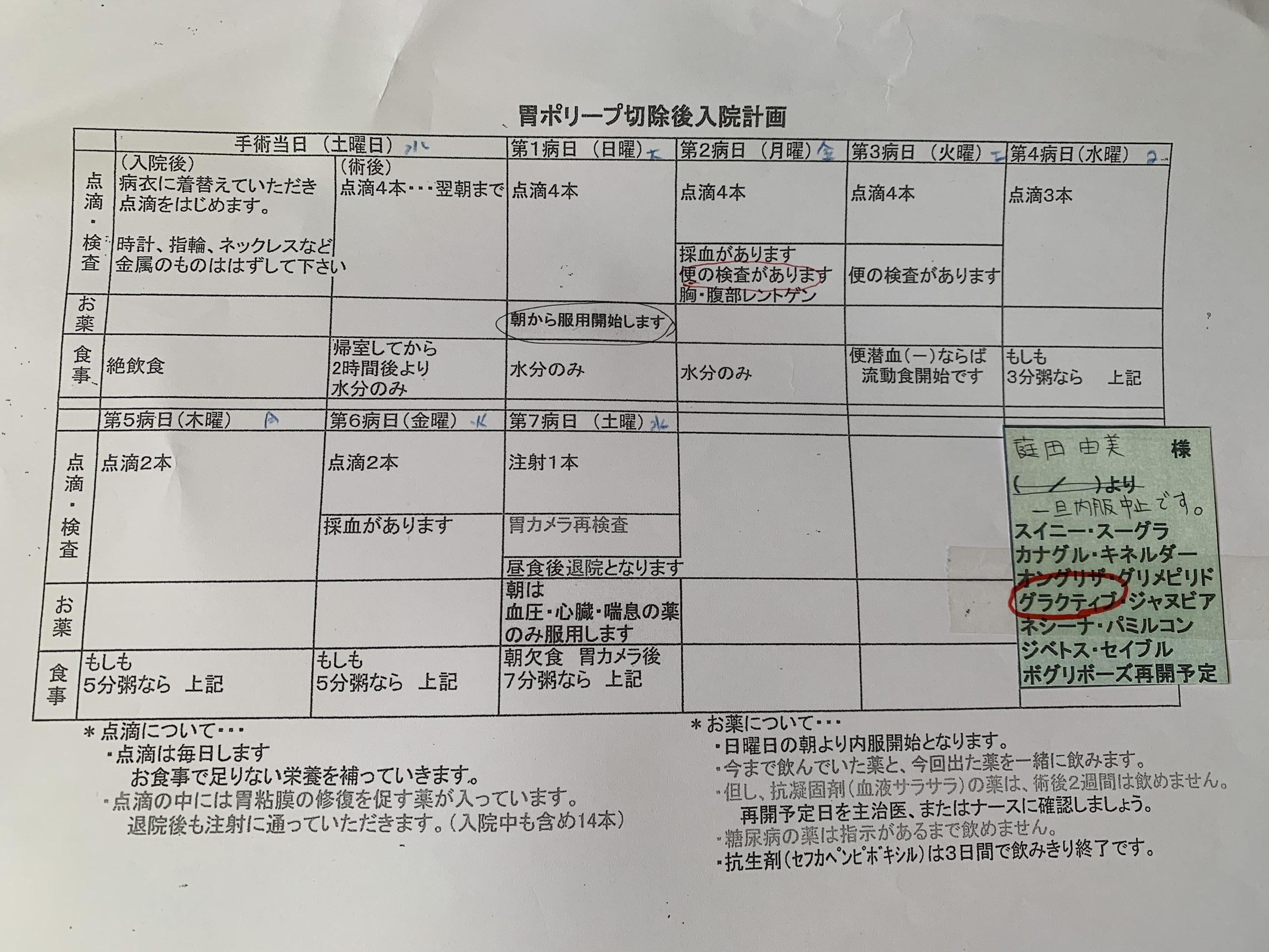 お昼過ぎからもう一度胃カメラで検査をして、目が覚めたら遅いお昼を頂いて退院となります。